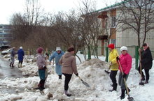 Состоялся субботник по очистке территории от снега, в котором приняли участие все сотрудники детского сада.