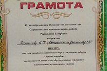 Призер муниципального конкурса "Лучший ковробук" разработок дидактического средства развития ребенка среди педагогов ДОО Сармановского муниципального района музыкальный руководитель Филиппова И.П.