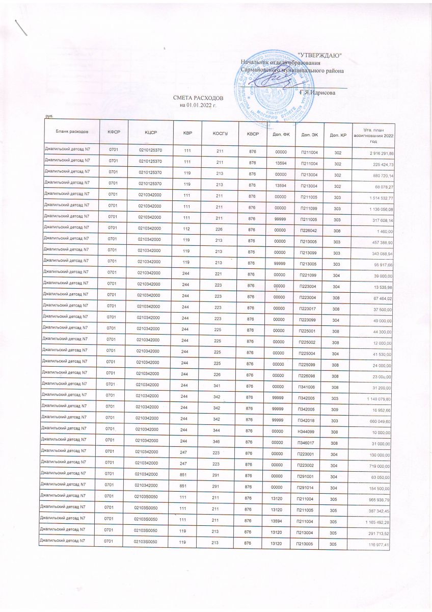 Отчет финансово-бюджетной палаты Сармановского муниципального района по МБДОУ №7