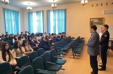 Перед ребятами выступал Юсупов Айдар Аскарович, кандидат юридических наук, доцент, начальник отдела довузовской подготовки.Он рассказал о структуре учебного заведения, порядке поступления, условиях обучения и факультетах. Отдельное внимание было уделено вопросам самореализации интеллектуальных, спортивных и творческих способностей в процессе обучения в университете.