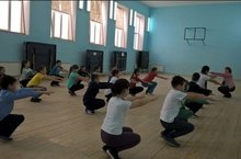 В гимназии продолжается акция «Приседайте на здоровье». На снимке - обучающиеся 3б класса