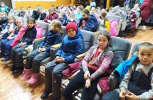 Во время новогодних каникул дети с удовольствием посещали кинотеатр и смотрели мультфильмы./Яңа ел каникуллары вакытында балалар кинотеатрда бик теләп булдылар һәм мультфильмнар карадылар