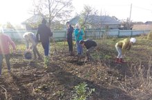 Мы убираем участок.Әти-әниләр белән участок җыештырабыз