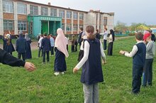 В МБОУ "Иляксазская ООШ" советник директора по воспитанию Шамсетдинова Р.Л. организовала общешкольную утреннюю зарядку в школьном стадионе.