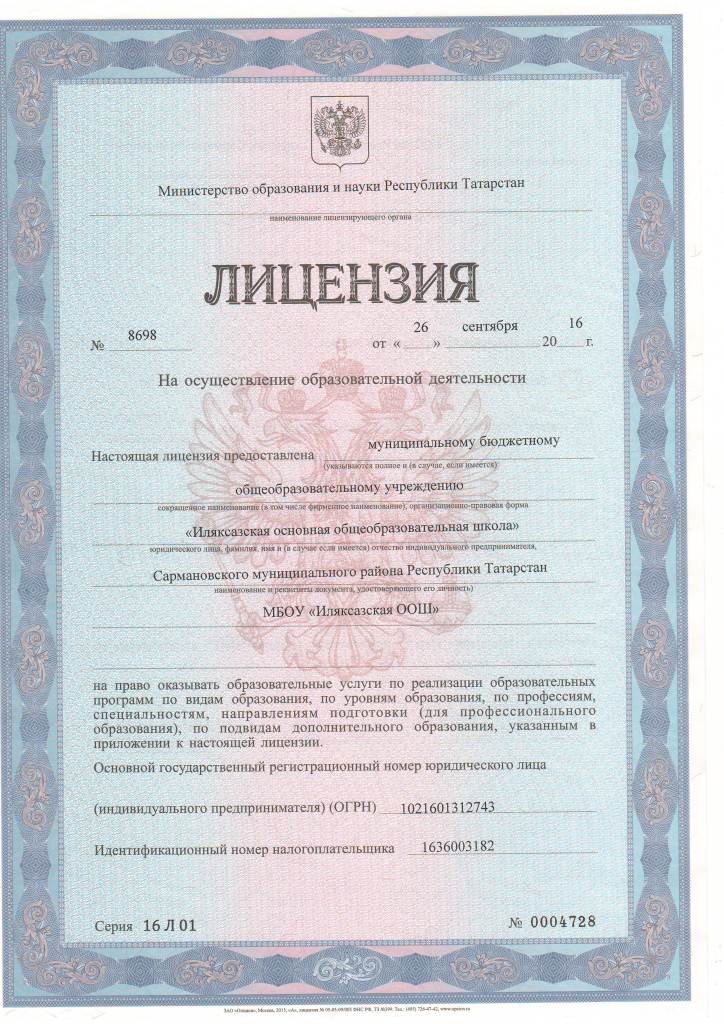 Муниципальное бюджетное общеобразовательное учреждение «Иляксазская основная общеобразовательная школа» Сармановского муниципального района Республики Татарстан / Татарстан Республикасы Сарман муниципаль районы МБГББУ "Илексаз төп гомуми белем бирү мәктәбе"