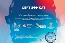 17 декабрьдә «Россия тәрбиячеләре» ВООО һәм «Россия тәрбиячеләре» милли тикшеренү институты Президент грантлары Фонды ярдәме белән «Сәламәт бала тәрбиялибез» Бөтенроссия финал форумы үткәрделәр, анда 2020 елның июленнән алып 2021 елның декабренә кадәр гамәлгә ашырыла торган федераль проектка йомгак ясалды.