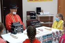 2 ноября отдыхающие в пришкольном оздоровительном лагере" Солнышко "приняли участие в интерактивной ангаме с гармонистом фольклорного ансамбля" Игана " Иваном тазовым, познакомились с народными музыкальными инструментами. И сами играли на этих музыкальных инструментах.