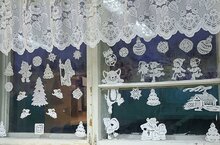 Учащиеся 9 класса приняли участие в Акции "Новогодние окна" . Они вырезали ВЫТЫНАНКИ из бумаги и красиво оформили свои окна. -