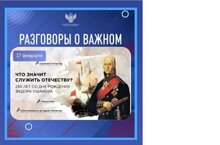 Сегодня во всех классах было проведено очередное занятия из цикла «Разговоры о важном» на тему «Что значит служить Отечеству?» 280 лет со дня рождения Ф. Ушакова