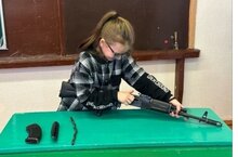 Учащиеся, прослушав правила по технике безопасности, попрактиковались в разборке и сборке автомата, а также в пулевой стрельбе по мишени.