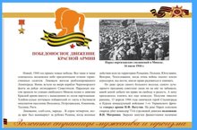 - «Победоносное движение Красной армии» - «Освобождение Карелии» - «Победа в Заполярье» - «Освобождение Прибалтики» - «Освобождение столицы Белоруссии - города Минск» «Освобождение Крыма и Керчи»