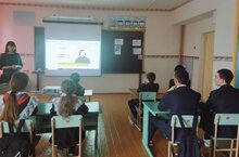 В школе прошёл открытый урок по литературе в 7 классе. Тема урока "Песни военных лет". Учащиеся обзорно познакомились с песнями, написанными в годы Великой Отечественной войны. В ходе урока они узнали не только историю создания этих песен, но и посмотрели видеоклипы, проанализировали стихи, работали с инфокартой и таблицами. Урок провела Аглямова Э.Р.