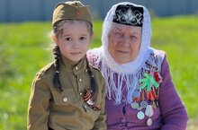 Ясмина Зиннатуллина со своей прабабушкой Раисой Губайдулловной Губайдуллиной, ветераном ВОВ, труженицей тыла.