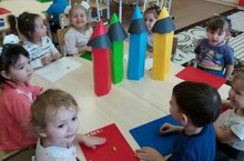 Беренче кечкенәләр төркеменә бүген әвәләү шөгыленә кунакка 4 Карандаш һәм Тычкан килде алар балаларга пластилиннан 4 төсне кулланып карандашлар ясарга ярдәм иттеләр.