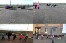 Физкультура на свежем воздухе.Инструктор по физической культуре Бадретдинова Ф.В. проводила эстафеты для детей старшей и подготовительной группы.