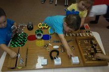 Бизиборд — развивающая доска для детей, которая содержит много различных кнопочек, замочков, щеколд, прищепочек и прочих предметов, которые могли бы заинтересовать малыша.В первой младшей группе малыши с удовольствием развивают мелкую моторику с помощью бизиборда,которого соорудила воспитатель Гайфуллина Р.А.