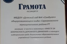 Наш детский сад занял 2 место в номинации "Вместе за безопасность дорожного движения" в конкурсе видеороликов среди дошкольных образовательных учреждении Сармановского района 10.01.2022