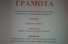 Воспитанница средней группы Хаертдинова Язиля стала победителем муниципального этапа IV республиканского конкурса творческих работ "Дорога БЕЗ опасности"/ Уртанчылар төркеменә йөрүче Хәертдинова Язилә "Куркынычсыз юл" IV республика конкурсының муниципаль этабында җиңүче булды 17.02.2021