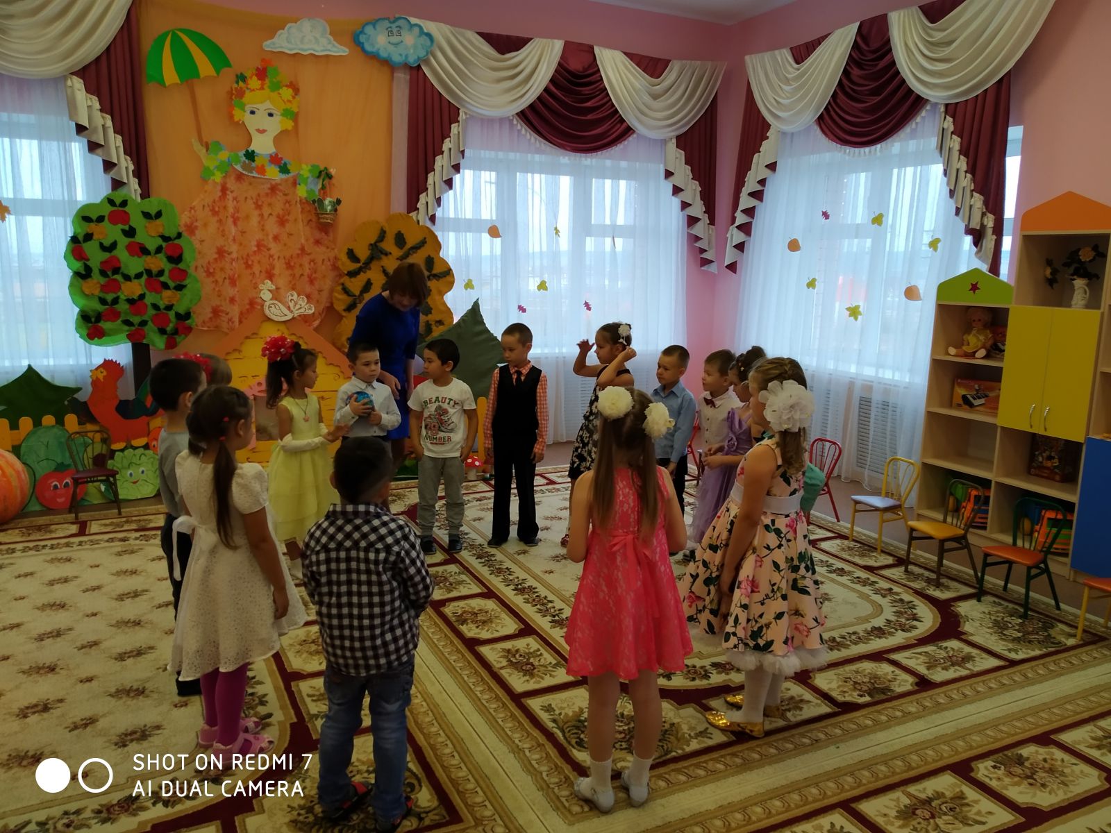 Бүген безнең балалар бакчасында уртанчылар һәм мәктәпкә әзерлек төркеменәрендә Көз бәйрәмнәре узды. Балалар көз турында шигырьләр, җырлар башкардылар. Төрле уеннар уйнап, әйлән-бәйлән әйләнеп күңел ачтылар/Сегодня в нашем детском саду в средней и подготовительных группах прошел Осенний праздник. Дети исполнили стихи и песни об осени. Они с удовольствием участвовали в играх, веселились. 25.10.2019
