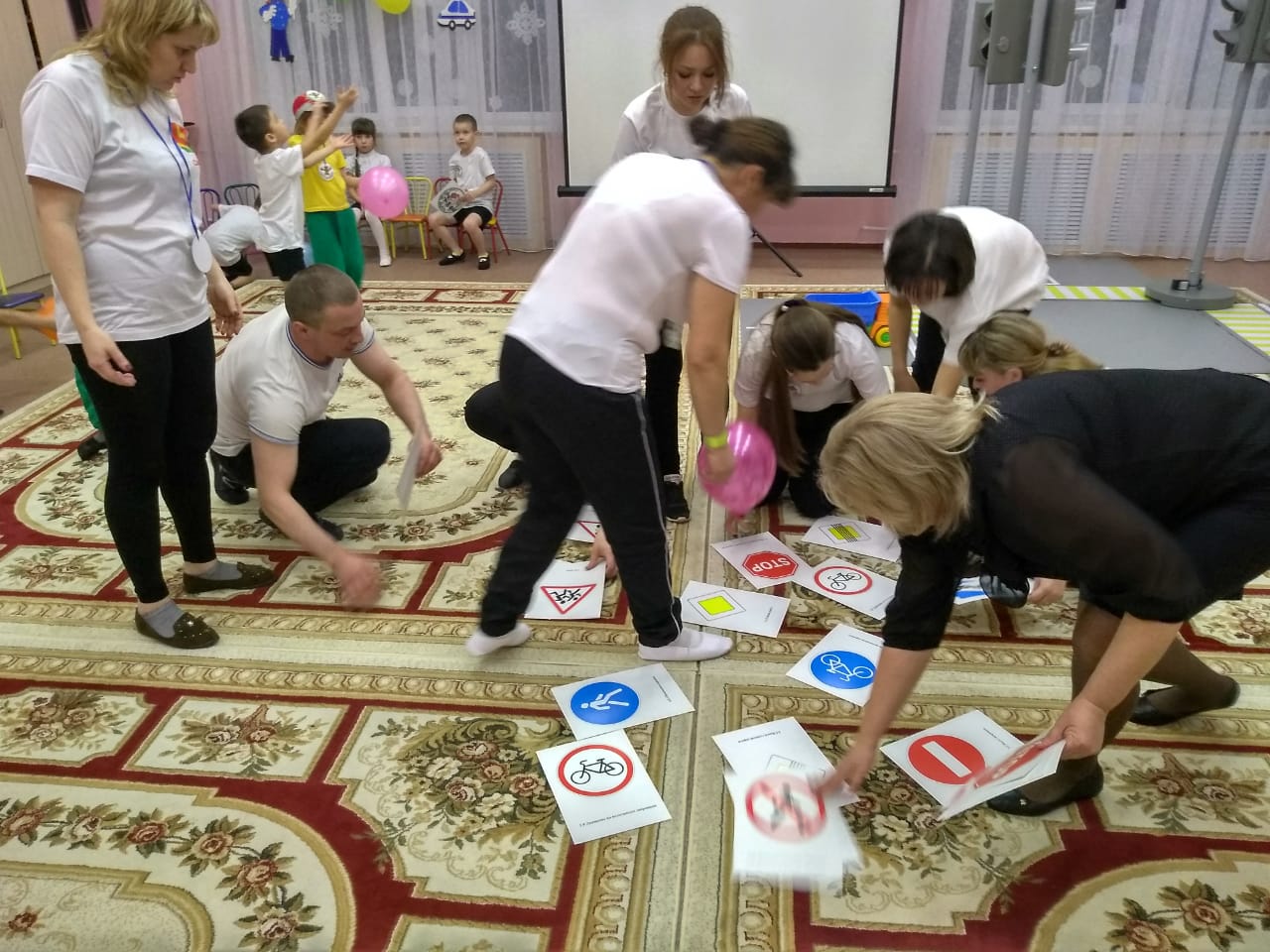 Бүген безнең балалар бакчасында юл йөрү кагыйдәләре буенча мәктәпкә әзерлек тәркеме әти – әниләре катнашуында бик кызыклы уен – викторина узды.Чарага Сарман һәм Мөслим районнары буенча Юл хәрәкәте иминлеге фонды җитәкчесе Ситдикова Алсу Разин кызы чакырылган иде. Чара командаларның үз-үзләрен таныштыру белән башланып китте. Һәрбер команда юл йөрү кагыйдәләре буенча белемнәрен күрсәттеләр. Катнашучыларга зурлар төркеме матур биюләрен бүләк иттеләр.Уен – викторина нәтиҗәләре буенча һәр команда истәлекле бүләкләр белән бүләкләнде/Сегодня в нашем детском саду провели увлекательную игру-викторину с родителями подготовительной группы по правилам дорожного движения с участием руководителя Фонда безопасности дорожного движения по Сармановскому и Муслюмовскому районам Ситдиковой Алсу Разиновны