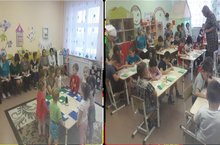 Уртанчылар төркемендә Голназ Габдулхәмит кызы "Теремкәйгә сәяхәт", зурлар төркемендә Света Мөнәвир кызы "Диңгезләр,дулкыннар буйлап" темасы астында ачык шөгыль үткәрделәр/Сегодня открытые занятия прошли в средней и старших группах.