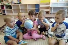 Кечкенәләр глобус белән танышалар./Воспитанники из первой младшей группы изучают глобус. 01.08.2018