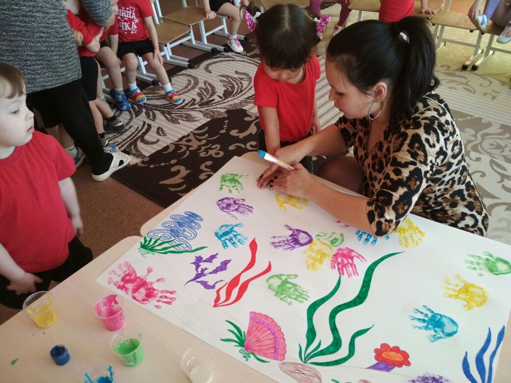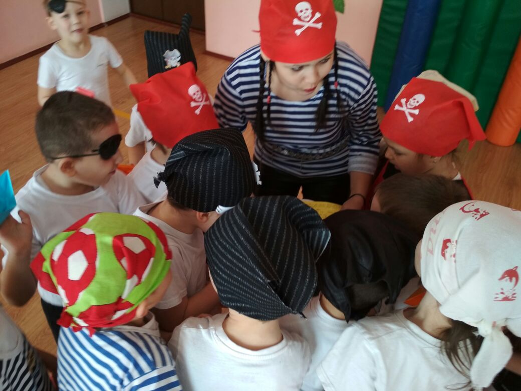 Сегодня ребята из подготовительной группы «превратились» в пиратов и искали «клад» по детскому саду, а детишки из первой младшей группы с помощью своих ладошек украсили «Аквариум»/Бүген мәктәпкә әзерлек төркеме балалары пиратларга “әйләнделәр” һәм балалар бакчасы буйлап “хәзинә” эзләделәр, ә беренче кечкенәләр төркеме балалары үзләренең нәни куллары белән “аквариумга” балыклар ясап куйдылар.