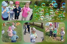 А сейчас игры с мыльными пузырями. Открываем колпачки, Выдуваем пузыри, Все они воздушные! И очень непослушные Как бы нам их поймать На ладошке подержать! 24.06.2025
