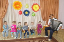Балалар кечкенәдән үк җырларга, шалтыравыклар белән уйнарга өйрәнәләр.Музыка җитәкчесе М.Р.Көрбангалиев кечкенәләр төркеме белән музыка шөгылендә.