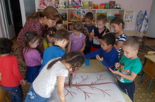 Зурлар төркеме балалары рәсем шөгылендә "Алтын көз" темасына коллектив рәсем .ясадылар