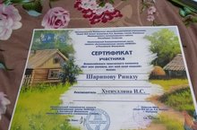 Мамадыш муниципаль районы уздырган " Туган авыл, туган як" конкурсында катнашып Риназ җиңүче сертификатына лаек булды.