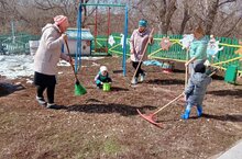 В рамках санитарного двухмесячника, ссотрудники детского сада убирают территорию/ Бакча хезмәткәрләре, санитар икеайлык кысаларында, әйләнә-тирәне чистарта 12.04.2022