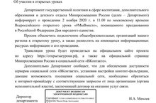 Департамент государственной политики в сфере воспитания, дополнительного образования и детского отдыха Минпросвещения России информирует о проведении 2 ноября 2020 года в 11.00 по московскому времени Всероссийского открытого урока #МыВместе", посвященного празднованию в Российской Федерации Дня народного единства.