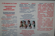 По инициативе Всемирной организации здравоохранения в Европе, в том числе в Российской Федерации и Республике Татарстан в период с 26 апреля по 2 мая 2021г. проводится Европейская неделя иммунизации ( ЕНИ-2021). Основная цель ЕНИ-2021 - повышение уровня знаний населения о важности иммунизации в предупреждении инфекционных заболеваний. Волонтеры -медики школы участвовали в акции "Европейская неделя иммунизации", раздали буклеты. 30.04.2021