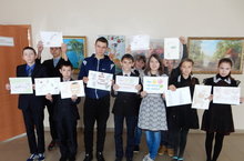 "Буду бдительным на льду" рәсем конкурсында җиңүчеләр. Аларның эшләре мәктәп турыннан узып, муниципаль турга җибәрелде.