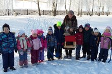 Мәктәпкәчә яшьтәге балалар төркемендә тәрбияләнүче балалар даими рәвештә табигатьтә күзәтү эшләре алып баралар. Бүген дә үзебезнең якларда кышлаучы кошларны кайгыртып җимлекләр элделәр. Җимлекләргә җимнәр сиптеләр.