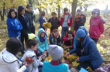Бүген бөтен мәктәбебез белән көзге табигатькә экскурсиягә чыктык. Инде уңышы җыеп алынган кырлар буйлап, кече урманга юнәлдек. Монда безне алтын сары, җете кызыл яфракларга төренгән агачлар, куаклар каршы алды. Оештыручы педагог үткәргән мастер - классларда катнашып, табигый материаллардан көзге букетлар ясарга өйрәндек. Экскурсиядән алган тәэсирләрләрне, белемнәрне файдаланып алдагы атнада "Табигать һәм фантазия" темасына күргәзмә оештырырга сөйләшеп кайттык.