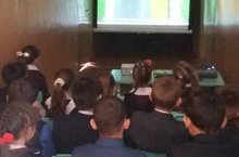 Бүген мәктәбебезгә район кино учреждениесе хезмәткәрләре килде. 1-4 сыйныф укучылары өчен юл хәрәкәте куркынычсызлыгына багышланган кино күрсәттеләр. Кинодан соң укучыларның белемнәрен тикшерү өчен викторина да үткәрелде. Сорауларга дөрес җавап биргән укучылар призларга лаек булдылар.