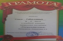 Отдел образования наградила семью Габдуллиных за 1 место в семейном конкурсе театральных постановок «Театральная семья» 15.01.2025