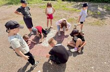 Дети активно принимали участие в создании дорожных знаков мелом на асфальте, изучали дорожные знаки.