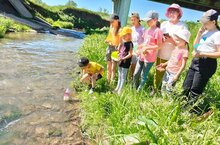 Укучылар, узләре ясаган көймәләрне, Минзәлә елгасында йөздереп уйнадылар.