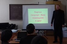 19 апреля учащиеся 8 В класса прослушали доклад заместителя директора по информатизации Нуриахметова А.Р. на тему "Портал госуслуг - Ваш помощник и друг". 20.04.2017