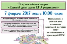 7 февраля проходит Всероссийская акция "Единый день сдачи ЕГЭ родителями". 07.02.2017