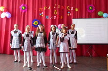 Обучающиеся школы поздравили всех работников-женщин с 8 марта. Ученики читали стихотворения, танцевали и пели песни.