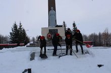 Из-за обильного снегопада сегодня отряд юнармейцев нашей школы очистил от снега мемориал памяти павших в Великой Отечественной войне.
