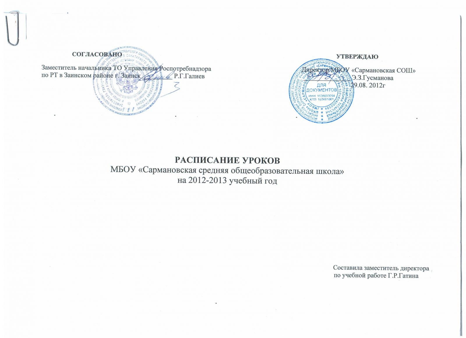 титульный лист Расписания уроков