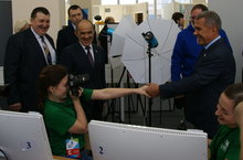 Президент Республики Татарстан Рустам Минниханов посетил площадки регионального чемпионата рабочих профессий «Молодые профессионалы» (WorldSkills Russia) на территории Казанского строительного колледжа.