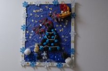 Каждая группа нашего детского сама смастерила новогоднюю картину по мотивам любимой сказки. Каких тут только картин нет и «Морозка», «По щучьему велению», «Рукавичка», «Маша и медведь», «Серебренное копытце» и другие.