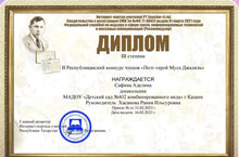 Воспитанники старшей и подготовительной группы принимали участие во II Республиканском конкурсе чтецов «Поэт-герой Муса Джалиль». Участие в конкурсе помогает ребенку формировать свой творческий мир. Поздравляем, и желаем им дальнейших творческих успехов.