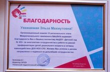Заведующий МАДОУ " Детский сад 402 комбинированного вида" Садыкова Эльза Махмутовна и коллектив детского сада были награждены Благодарственным письмом Казанского педколледжа за активное участие в региональных чемпионатах BabySkills.